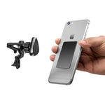 Secures onto horizontal or vertical car air vents with added support leg for extra stability