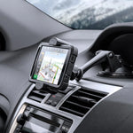 The RoadVise® Car and Truck Phone Holder with Sticky Suction Windshield or Dashboard Mount is the perfect solution for mounting your smartphone onto your windshield, dash, and other flat or slightly textured surfaces. You can use your phone as a GPS device, hands-free calling, and music streaming. The pedestal's base uses a powerful polyurethane gel and suction combination to provide a maximum surface bond. Its 3" arm adjusts vertically, and the base can be moved 360° so you can fine-tune your smartphone's position so it's in your eyeline for GPS while your eyes are safely on the road.
