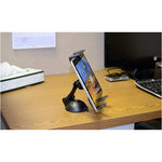This mount includes Arkon’s Slim-Grip Universal Tablet Holder, a Sticky Suction 80mm Mounting Pedestal, and an optional 3M adhesive mounting disk. The mount is ideal for car dashboards, windshields, and other flat or slightly textured surfaces. The sticky suction base uses a powerful combination of polyurethane gel and suction to provide a maximum surface bond. Use the included 3M adhesive mounting disk to prevent permanent indentation marks on soft vinyl, leather, or similar dashboard surfaces. While incredibly strong and durable, the sticky suction mount is also easily removable and reusable. If it has a drop in suction, just wash the pad with a mild liquid soap and warm water then air dry to restore the suction. The Slim-Grip tablet holder fits tablets 7 to 18.4 inches in screen size. The holder features a spring-loaded design that makes it easy to insert or remove the tablet by pushing down on the lower legs of the holder with one hand. Included with the holder are 10 support legs (4 short, 2 medium and 4 long versions). Choose the 4 legs that provide the best fit for your tablet. These insert at the top and bottom of the holder and can be easily adjusted in order to keep any side buttons and ports unobstructed. For most large tablets, the best mount holder configuration is to attach 2 short support legs on top and the 2 long support legs on the bottom of the holder. For smaller tablets, use all 4 short support legs on the holder. For larger tablets including iPad Pro, use all 4 long legs. For vertical viewing, adjust the 360-degree swivel.