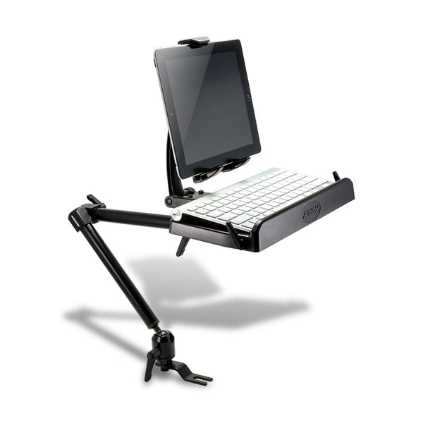 The Arkon Tablet & Keyboard Combo Mount is the perfect solution for using a tablet and Bluetootth keyboard in a vehicle. The 22" aluminum mount is fully adjustable and attaches to the vehicle’s seat track bolt. The locking holder fits all iPad® models as wel as any other 7" - 12" tablet, even with a case. The keyboard tray features a non-sliding foam layer and integrated keyboard gaurds to keep the keyboard in place.