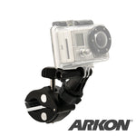 Arkon’s GP131 bicycle or motorcycle handlebar clamp mount is compatible with all models of the GoPro HERO action camera, including GoPro HERO6, HERO5, HERO Session, HERO4, HERO3+, HERO3, HERO2, and HERO. This mount is also compatible with the Garmin VIRB XE and the 360fly, a 360-degree panoramic camera. GP131 includes Arkon’s Bicycle/Motorcycle Handlebar Clamp Mount and GoPro camera adapter with acorn nut and screw for lateral mount connections. The mount fits on bicycle or motorcycle handlebars measuring 12mm to 40mm in diameter and is easy to install. To install the camera, just unscrew the clamp to open it, place it on the handlebar then and secure with the tightening knob. The mount’s swivel ball adapter head rotates 360°, providing the ultimate flexibility in positioning the camera at any angle. This versatile mount can also be used for live streaming on Periscope (GoPro HERO4 Black or Silver only) as well as for easily capturing photos or video on your motorcycle or bike ride.
