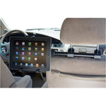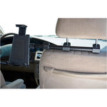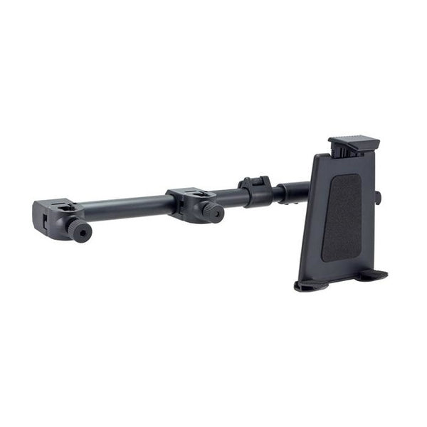 TABPB-RSHM3 is a high-quality universal tablet car seat headrest mount. It easily attaches to your car or truck’s front or back seat headrest posts, making it ideal for normal passenger use or for rear-facing baby seats. Some of the most popular large (9”-12” screen size) tablets being used in vehicles today include the Apple iPad Pro 12.9, iPad Air, and iPad 4, 3, and 2, Samsung Galaxy Note 10.1, Galaxy Note Pro 12.2, Galaxy Tab E 8.0, Galaxy Tab Pro 10.1, and Galaxy Tab Pro 12.2, and Google Nexus 10. They’ve replaced portable DVD players as the best way to entertain the kids on long trips. Arkon’s deluxe headrest tablet mount is a road trip essential. This headrest mount is ideal for tablet viewing by multiple passengers. It features an adjustable-length rigid extension arm that positions the tablet in the center between the two seats. Attach it to either the driver’s or passenger’s side seat if your car has the 2-post headrest configuration. It includes Arkon’s Slim-Grip universal tablet holder and the 2-post car seat headrest mount. For single-seat tablet viewing, see Arkon’s model TAB-RSHM. Arkon’s Universal Push-Button Tablet Holder features a simple one-touch release push-button on the side of the holder. The holder measures 6.5 inches high by 4.6 inches wide, and opens as wide as 9” to securely grip any large (9” to 12” screen size) tablet. Insert your tablet horizontally into the holder and push down on the grip arm to lock the tablet into the holder. Adjust the 360° swivel to view the tablet in the vertical position. To remove the tablet from the holder, simply press the button on the side of the holder to release the holder’s grip arm.