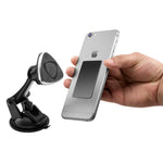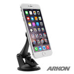 This mount includes Arkon’s low-profile universal rare earth magnet mount with accompanying metal device plates, a sticky suction mounting pedestal with a 3-inch articulating arm, and an optional 3M adhesive dash mounting disk. Simply adhere one of the metal plates to the outside of your device or case. The mount’s built-in magnetic cell phone holder head powerfully attaches to the metal plate, keeping your smartphone, GPS, or other device secure without using a holder. The mount’s base uses a combination of polyurethane gel and suction to provide a maximum surface bond. The 3-inch articulating arm of the pedestal adjusts vertically and provides 360-degree rotation, giving you the ultimate flexibility in positioning the smartphone or device at any angle. In order to prevent permanent indentation marks on dashboard surfaces made of soft vinyl, leather, or similar materials, Arkon recommends using the included 3M adhesive mounting disk. While powerfully strong, the sticky suction mount is also easily removable and reusable. If it has a drop in suction, just rinse the pad with a mild liquid soap and warm water, and then let air dry to restore the suction.
