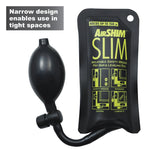 The AirShim SLIM is an inexpensive and convenient elevator safety wedge that is ideal for service and maintenance calls. No more bending down to the floor to install a wedge, just take the lightweight SLIM from your shirt pocket, slide it into the gap between door and jamb at waist level and pump it up to hold the door. You can also use the SLIM during repairs to lift, shift, level and plumb items during installation. Its narrow design enables you to use it in hard to access spaces while still providing powerful lifting ability and safety.