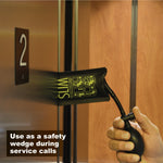 Whether you're an elevator service professional, an elevator mechanic or an inspector, you'll be glad you have this compact and convenient safety wedge. The SLIM replaces costly and heavy adjustable metal wedges and frees up your hands to work. It may be the safest elevator door safety wedge because elevator professionals will actually use it.