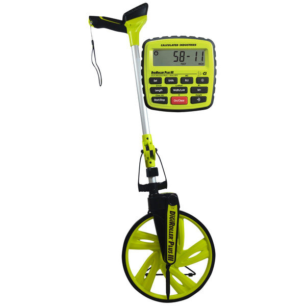 The newly re-designed DigiRoller Plus III can measure lengths, widths and heights, and it can calculate areas, volumes, perimeters and more in U.S. or metric units. The new Digi puts the controls right in the palm of your hand - no stooping, bending or squinting.